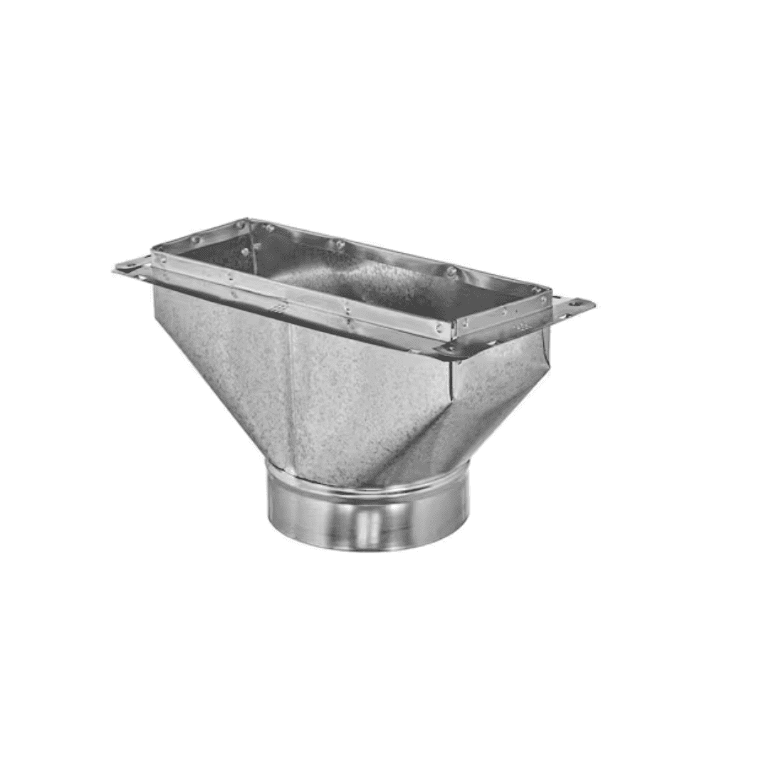 - Creates a straight (in-line) transition from 6 in. round pipe or insulated flexible duct to a 12 in. x 6 in. air register or grille