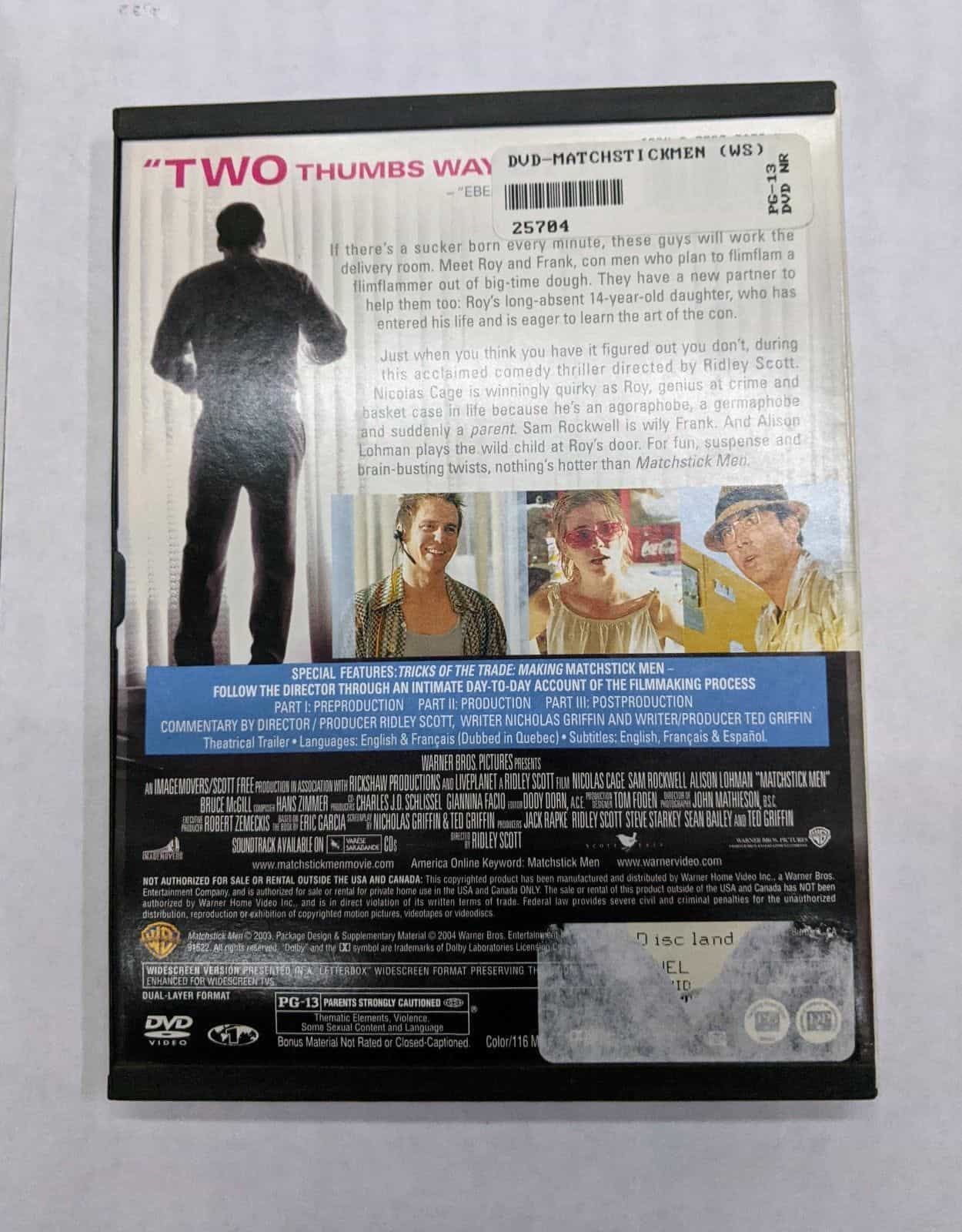 Roy (Nicolas Cage), a depressed con artist with obsessive-compulsive disorder, and Frank (Sam Rockwell), his partner, find their line of work complicated by the arrival of Roy’s teenage daughter, Angela (Alison Lohman). Angela brings some spirit back into Roy’s life, and some of his disorder symptoms seem to disappear. But when Angela wants to learn the family business, and Roy allows her to assist on a big scam concerning a businessmen (Bruce McGill), he reconsiders his parenting techniques.