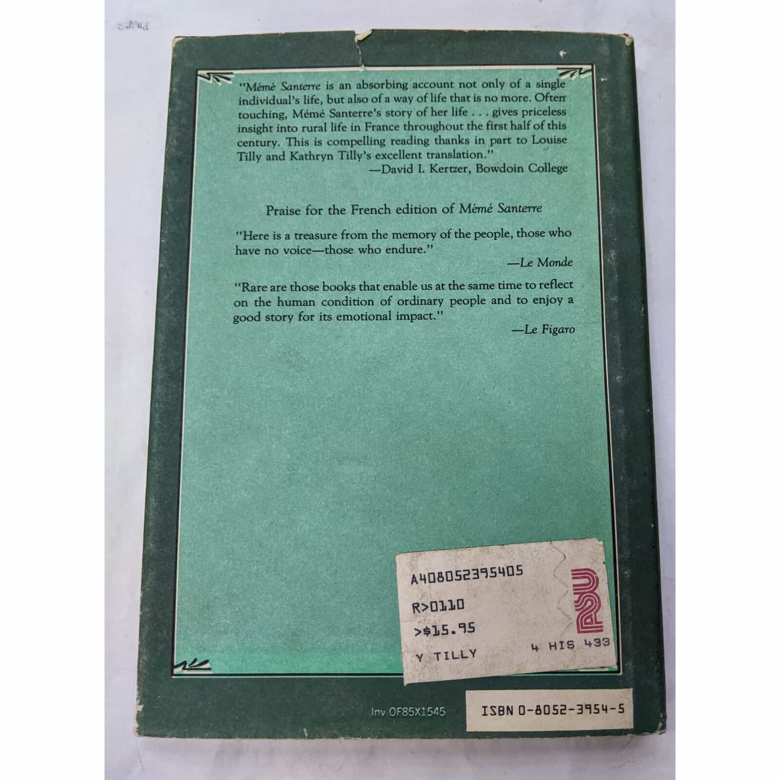 This is a vintage book written translated in 1985 by Louise A. Tilly and Kathryn L. Tilly. The dust jacket has staining. The bottom of the pages also has staining.T
