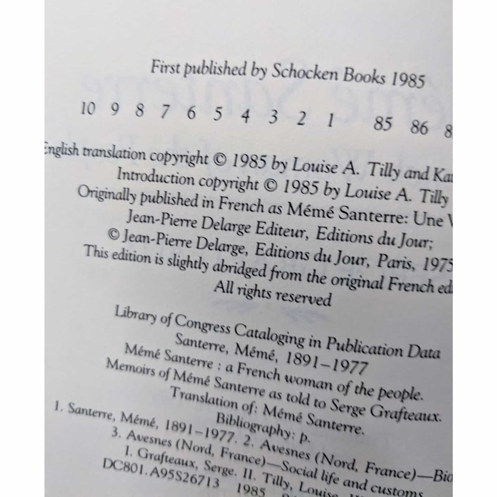 In this biography, Meme gives her story of rural life in France throughout the first half of this century. She was the last child of a family of linen weavers. She was born in 1891. In this book she tells her story to Serge Grafteaux, a French journalist.