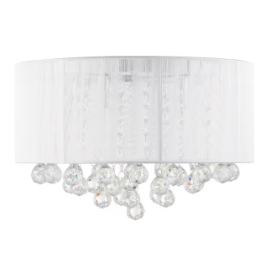 Merra HCF-1319-11-BNHD-1 16 in. 4-Lights Chrome Crystal Chandelier Flush Mount Fixture with White Coiled Shade