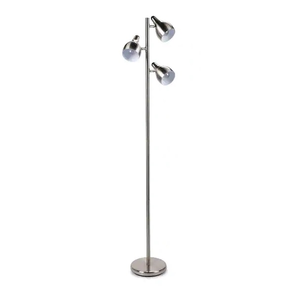 This modern inspired floor lamp blends style and function. 3 adjustable shades each rotate horizontally and vertically, letting you direct the light as needed. 3 metal shades with white interior help to reflect more light. Each shade takes one 40-Watt incandescent or equivalent CFL bulb. Each shade has its own switch.