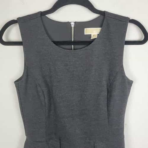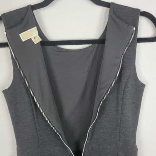 Sime gray lined sleeveless dress with a zipper in the back! Wear this alone or pair it with a blazer! A must have for any wardrobe!