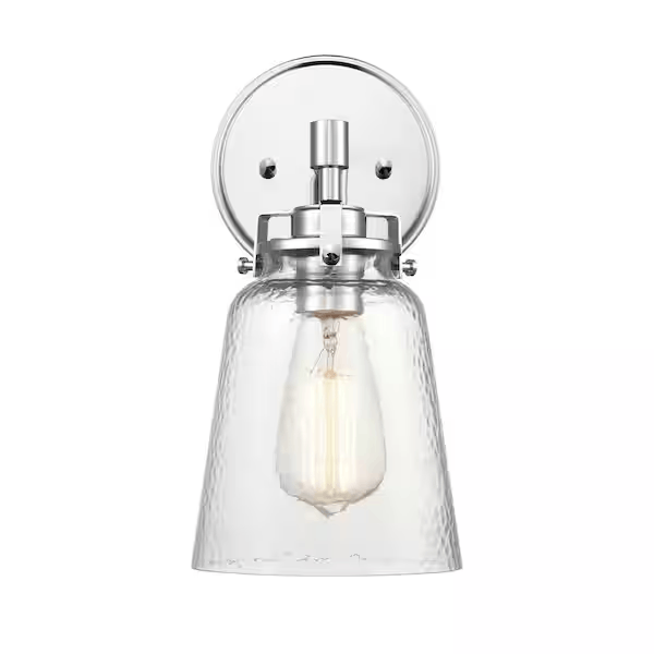 Millennium Lighting 4411-CH Amberose 6 in. 1-Light Chrome Wall Sconce with Hammered Glass Shade