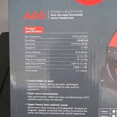 MISDE A66 Illuminated Gaming Headset, Surround Sound, Boom Mic, USB/3.5mm