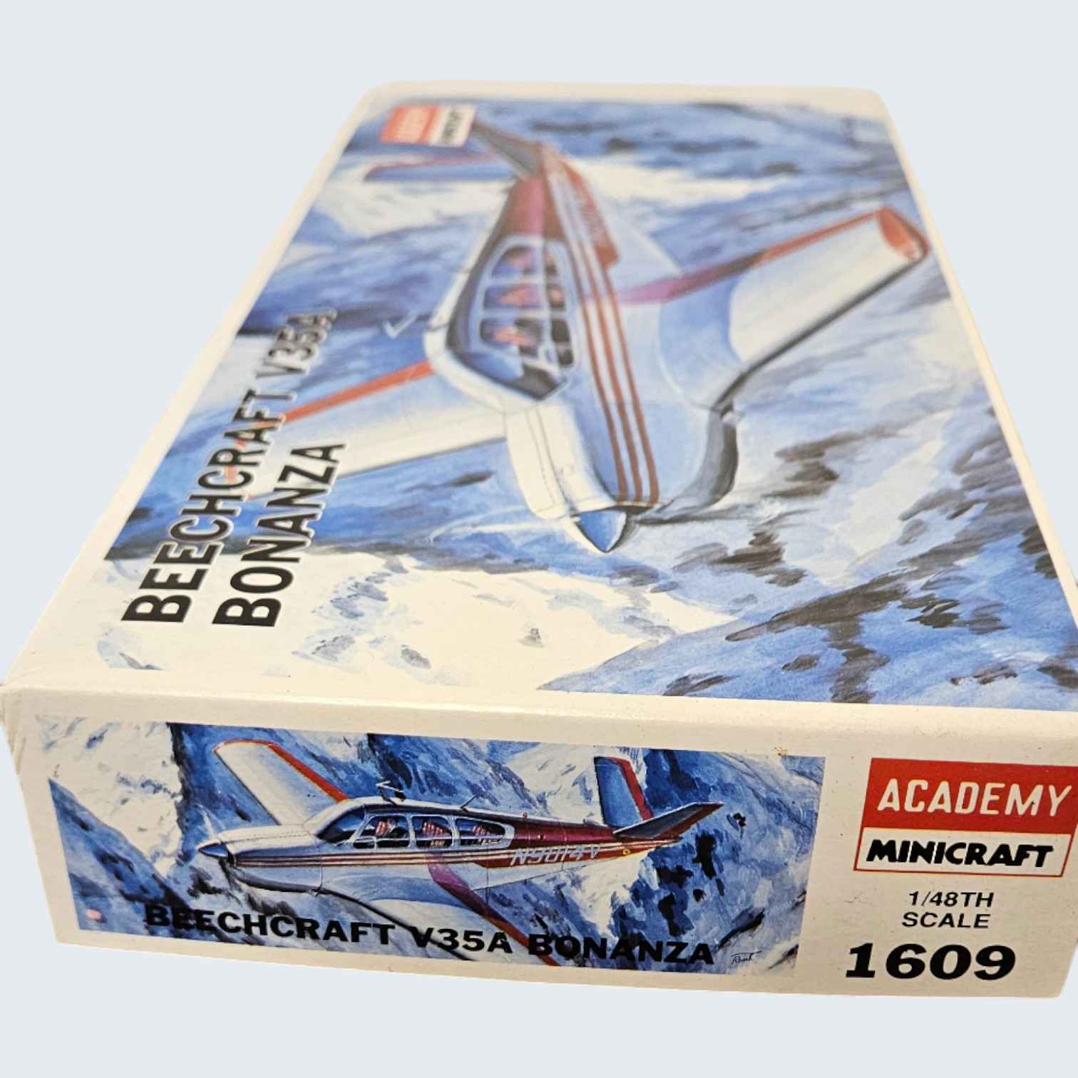 Model Airplane by Academy Minicraft Beechcraft V35A Bonanza 1:48 Scale #1609. New in Box. Made in Korea. ITEM #4057