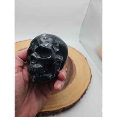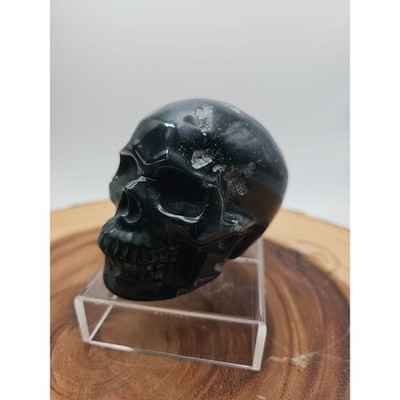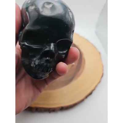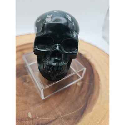 The Moss Agate Skull is a unique and rare crystal specimen, weighing 1.37lb. This Generator-shaped stone originates from Madagascar, making it a special and exotic addition to any crystal collection. With its fascinating design and origins, this Moss Agate Skull is sure to be a captivating display piece for any collector of crystals and mineral specimens.