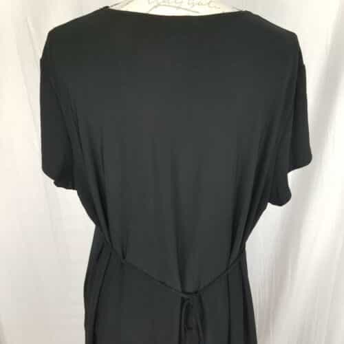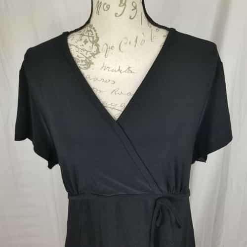 Basic black blouse in a wrap style v-neck with a tie-back waist to allow for plenty of room for your little bundle to grow!