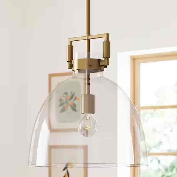 Nathan James 12203 Leigh Gold Indoor Ceiling Hanging Pendant Light with Clear Glass and Adjustable Cord for Kitchen, Island, Entryway