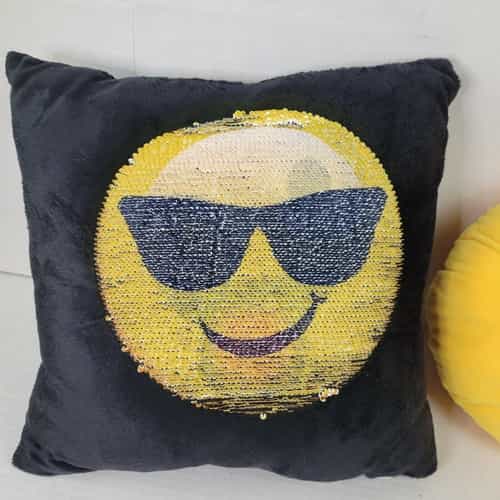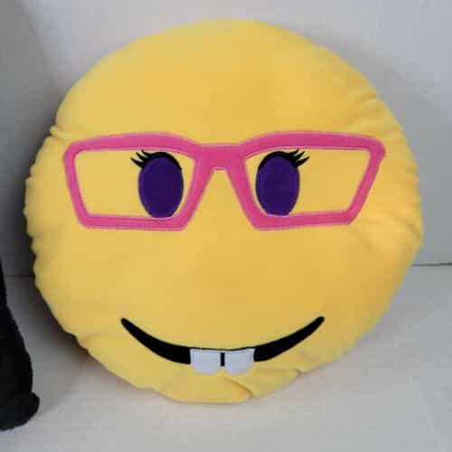 Fun emoji pillow set that includes the nerd girl pillow and the black reversible sequin pillow!