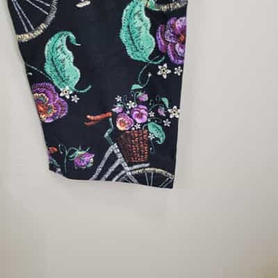 Soft and comfy pair of black leggings made of polyester and spandex with a fun bicycle and floral print!