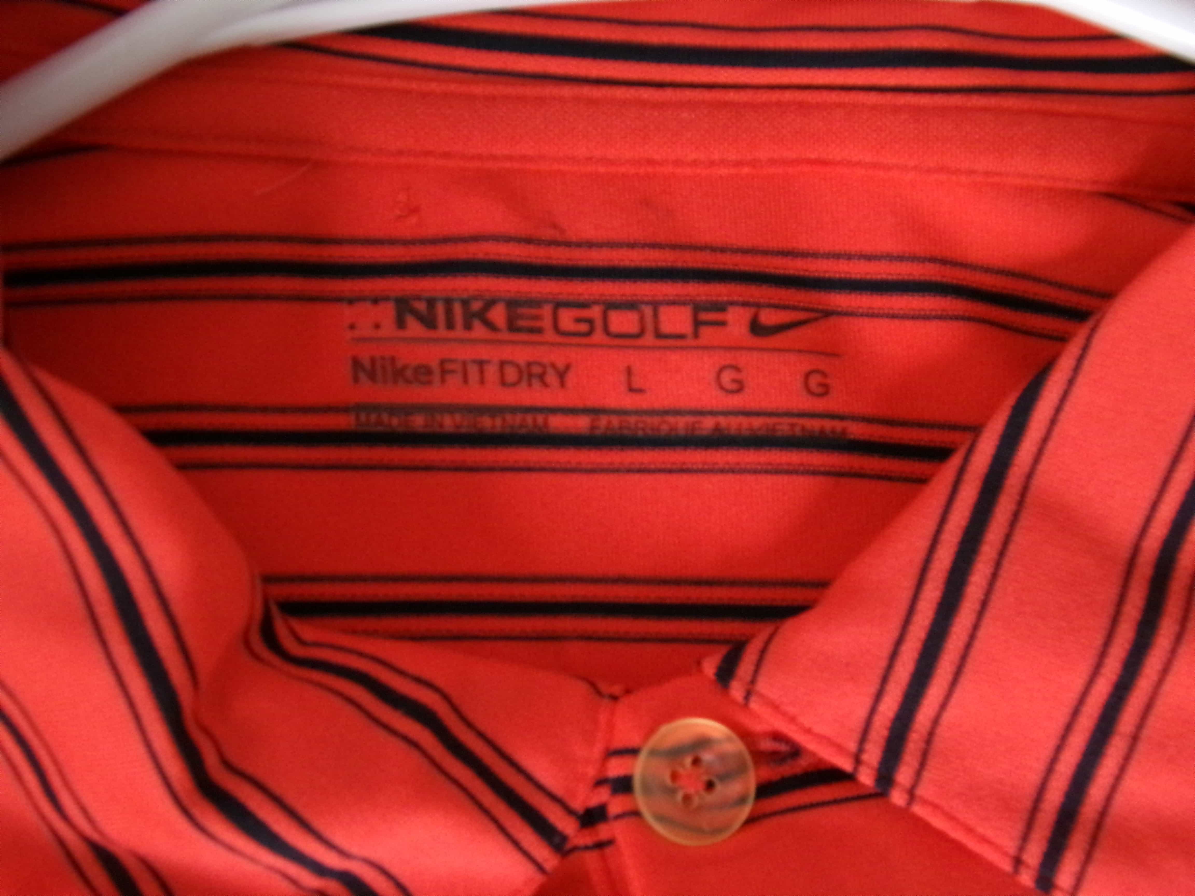 Nike Golf Polo Shirt Men’s Size L Fit Dry Casual Red Black Striped Short Sleeve