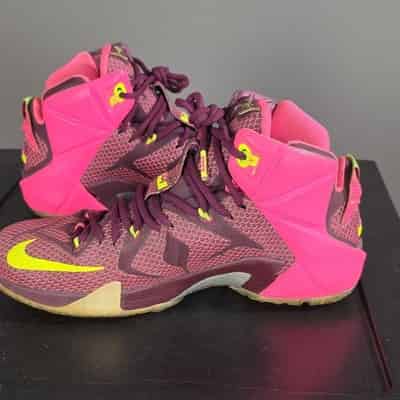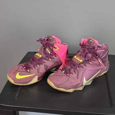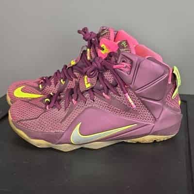 Nike LeBron 12 Double Helix Purple Pink Yellow High Top Men’s Basketball Shoes- No Box