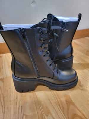 Step up your style with these bold and trendy Nine West combat boots. Featuring a chunky block heel and classic lace-up design, these boots are perfect for everyday wear or making a statement.