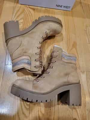 Step out in style and comfort with these stunning Nine West Quona2 Lace-Up Combat Booties. Designed to add a glamorous touch to your winter wardrobe, these booties feature a dazzling rhinestone design, making them the perfect statement piece for any outfit.