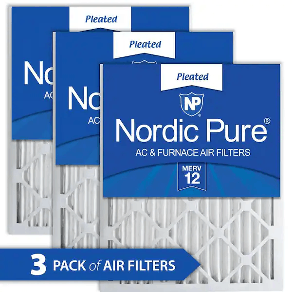 Nordic Pure MERV 12 Pleated AC Furnace Air Filters provide exceptional filtration for both home and commercial environments. MERV 12 furnace filters are comparable to HVAC filters with the rating of MPR 1500-1900. Nordic Pure furnace air filters are manufactured using a heavy duty, moisture resistant beverage board frame. As with all Nordic Pure furnace air filters, the material is electrostatically charged to attract unwanted particles. The media used will not promote the growth of bacteria or mold on the air filter. For fresh, clean air in your home and office, it is important to regularly change your AC filter, especially during home improvements. We recommend changing your HVAC furnace filter every 1-3 months, depending on your unique home or office environment. People with pets or those who suffer from allergies should change their A/C air filters more often. Replacing your air filter regularly not only improves indoor air quality, it helps your HVAC unit perform more efficiently. Important Note: Almost all air condition filters have a different Actual Size than Nominal Size printed on the air conditioning filter. It is best to measure the exact size of your A/C filter and compare it to our Actual Size to be sure your HVAC replacement filter fits!