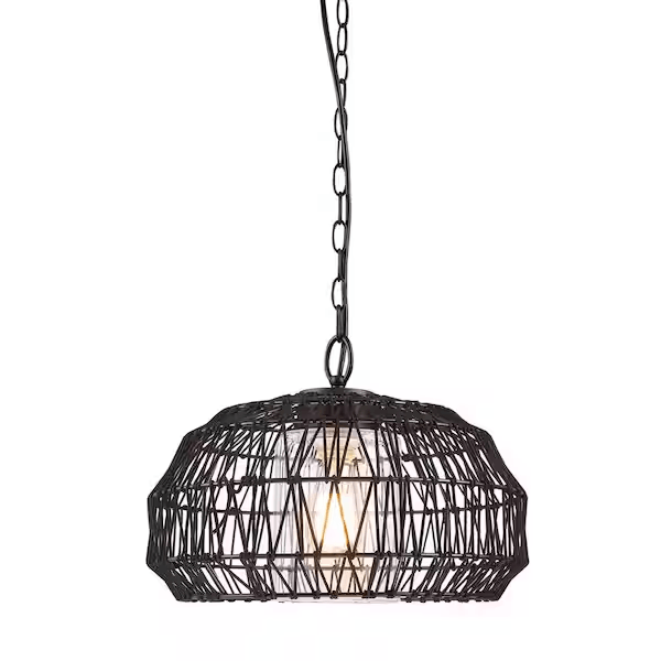 Novogratz x Globe Electric 44759 Diego 1-Light Matte Black Outdoor Indoor Plug-In Pendant Light with Woven Fabric Shade and Designer Black Fabric Cord