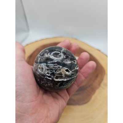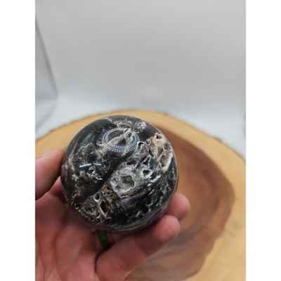 Ideal for collectors of rocks, fossils, and minerals, this sphere is a perfect example of the intricate beauty that nature can create. With its spherical shape and mesmerizing pattern, it is sure to be a conversation starter wherever it is displayed.