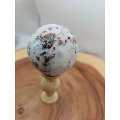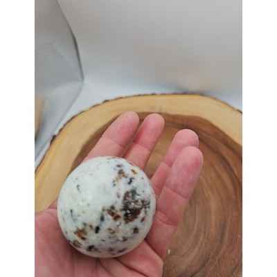 The Ocean Jasper Sphere with Stand is a beautifully crafted collectible that features a sphere shape, weight of 204g. This unique piece is made of Ocean Jasper, a type of crystal known for its beautiful and intricate patterns. The combination of the sphere shape and the stand makes it an elegant and eye-catching addition to any collection of crystals and mineral specimens. Its natural beauty and craftsmanship make it a perfect decorative piece for any space.