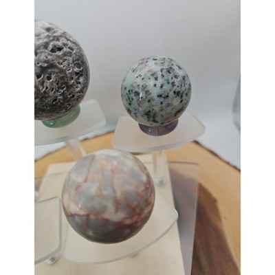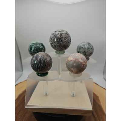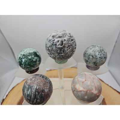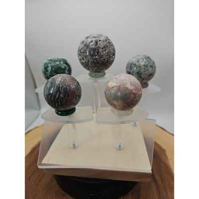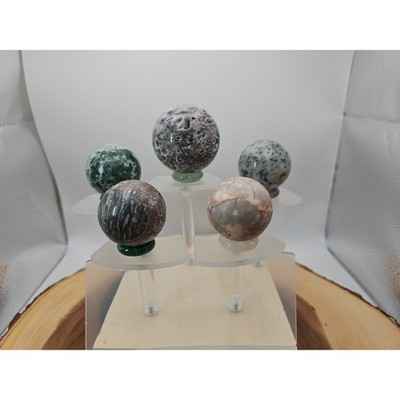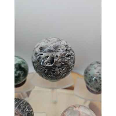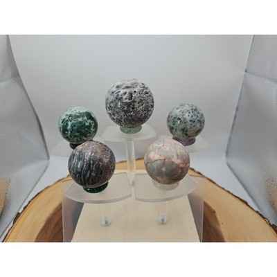 The Ocean Jasper Sphere with Stand is a beautifully crafted and unique decorative piece. This sphere is made of natural Ocean Jasper, a stone known for its intricate and colorful patterns. The stand adds a touch of elegance and stability to the sphere, making it a versatile and eye-catching addition to any home or office décor. This piece is a perfect combination of nature's beauty and artistic flair, making it a standout collectible item for crystal enthusiasts.