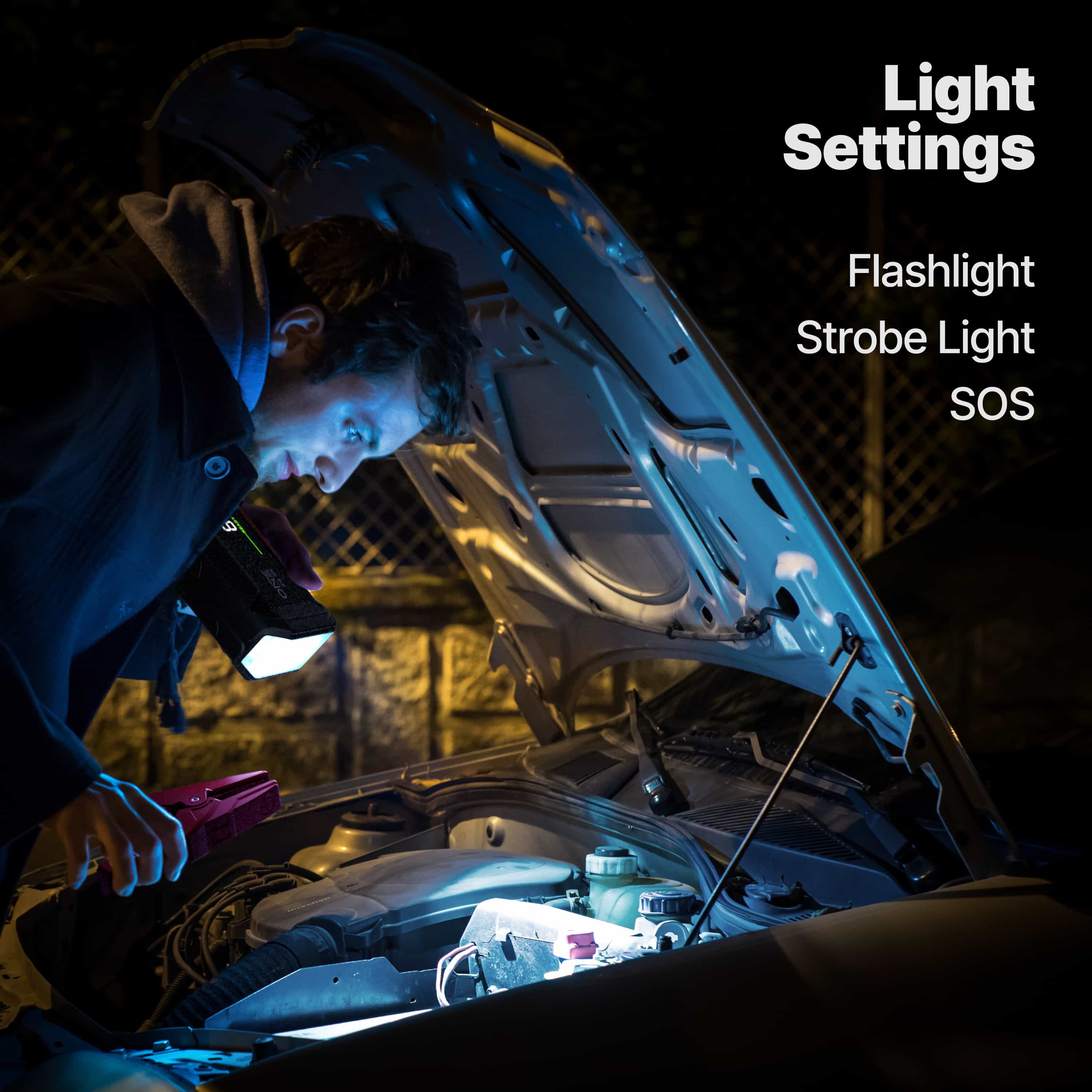 – LED Light: Our jumper comes with 3 different types of light modes (Light, Blinking, SOS). This is perfect for emergencies or on camping trips! The LED light is so bright it can be seen up to 5 miles away!
