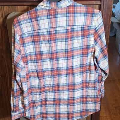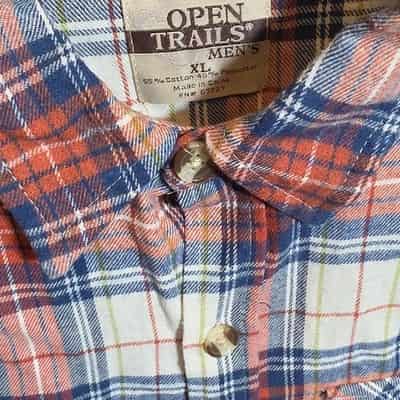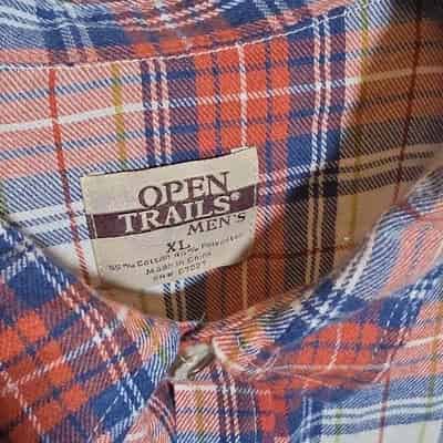 Open Trails Men’s Red Blue Plaid Flannel Long Sleeve Button-Up Shirt XL