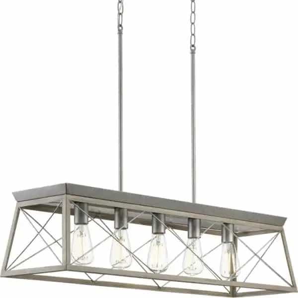 Create a cozy home with the 5-Light Bleached Oak Farmhouse Linear Island Chandelier. Light sources exude a comforting country glow as they peek through the classic X-brace design reminiscent of country barn doors and rustic farmhouse gates. A faux-wood frame coated a rustic bleached oak finish accented by a galvanized plate on top of the structure fuses the chandelier with charming country character. for ideal illumination, use 5 medium base bulbs that are sold separately (100-Watt maximum – LED/CFL/incandescent). The light fixture is compatible with dimmable bulbs. corporate clear light bulbs for a pinch of contemporary shine or opt for vintage bulbs to enhance the light fixture’s rustic demeanor. The linear island chandelier’s rustic design is ideal for any kitchen island or dining room table coastal or farmhouse style settings. It’s time to breathe new life to the mundane every day with timeless and truly transformative bathroom lighting. Make your purchase today to begin your journey to a whole new lighting experience. products are designed for exceptional quality, reliability and functionality.