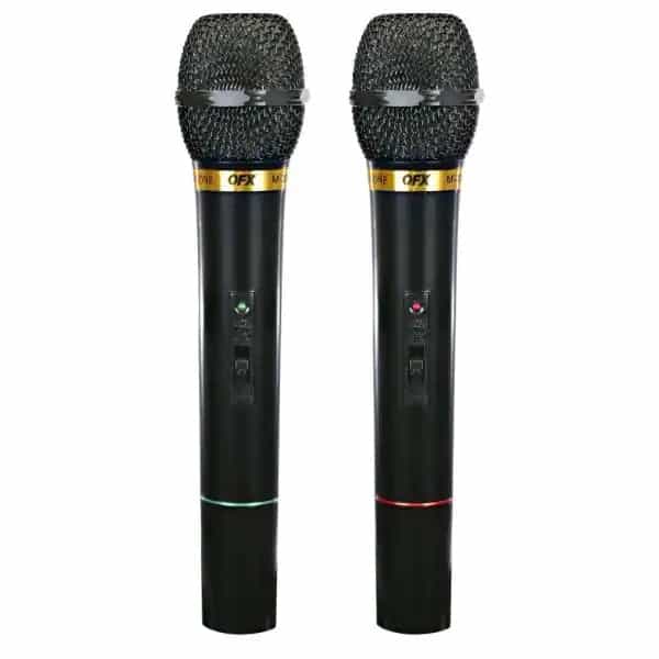 QFX M-336 Dynamic Professional Wireless Microphone System. 2 unidirectional dynamic microphones. Works great with Karaoke and PA speakers.