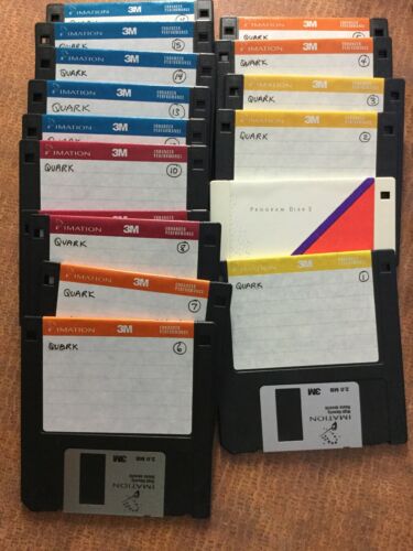 QuarkXpress 3.2 Diskettes as shown disk 1-16 and program updater disk 1 version 3.2 and then several quark xpress version 3.32 smart install disks. Used sold as is but looks like at least one version of quark is there. Condition is Very Good. Shipped with USPS Priority Mail. Please ask if you have questions. Thanks for looking and happy bidding!