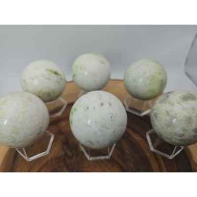 This product is a 50mm quartz crystal sphere, designed in a perfect sphere shape. It is a unique and elegant addition to any crystal collection, reflecting light beautifully and adding a touch of natural beauty to any space. Each sphere is one-of-a-kind, making it a special and sought-after item for collectors and enthusiasts alike.