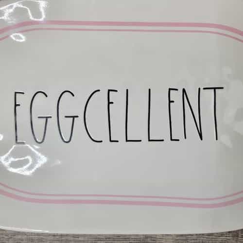 White rounded rectangular platter designed to celebrate the spring season and Easter holiday! Perfect addition to those treasured meals with friends and family!