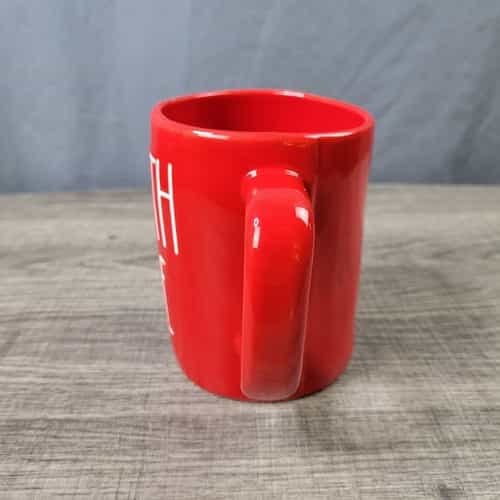 Festive red ceramic mug perfect for sipping on your favorite hot or cold drink!