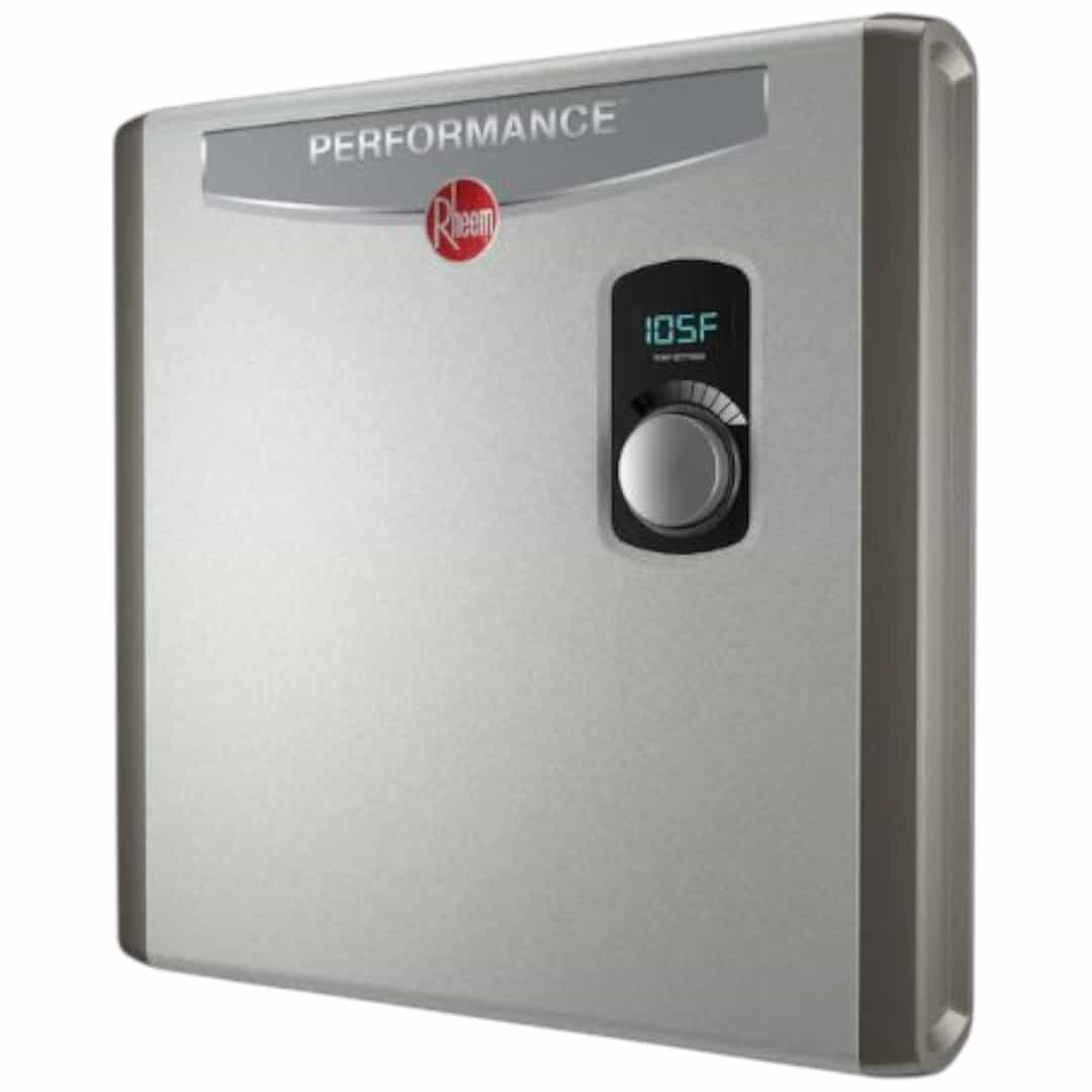 Save energy and reduce costs with the Rheem Performance Electric Tankless Water Heater. This compact, space-saving unit installs under cabinets or sinks with no venting required and delivers continuous, instant hot water when you need it. Designed for efficiency, it helps lower energy bills while providing reliable hot water for multiple fixtures.