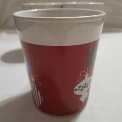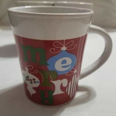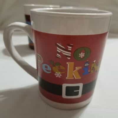 Set of 3 12 oz. mugs that are sure to brighten up your holiday table with wishes for a merry holiday, advice to not peek at all the fun presents under the tree and a friendly smiling snowman!