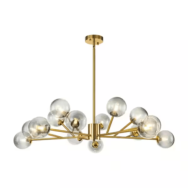 RRTYO 81010000051378 Higginsville 15-Light Modern Farmhouse Brass Sputnik Sphere Cluster Chandelier with Gradient Grey Glass Globe Bubble