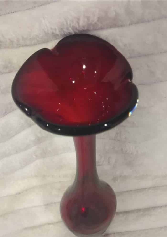Ruby Red Tall Blown Bud Vase Tulip Shaped Top