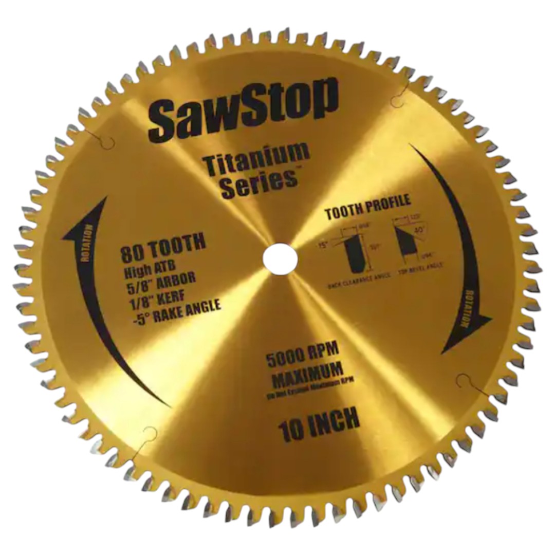 SawStop BTS-P-80HATB 80 Tooth Titanium Series Premium Woodworking Blade