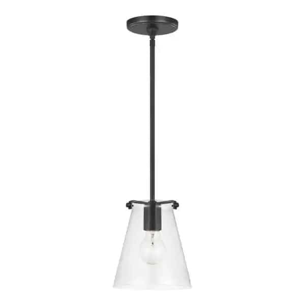 The Sea Gull Lighting Blaine 1-light indoor pendant in matte black provides abundant light to your home, while adding style and interest. This fixture features and adjustable hanging length. A great choice for your do-it-yourself project.
