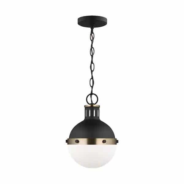 The Hanks medium modern pendant is offered in the Midnight Black/Satin Bronze, Antique Brushed Nickel, Satin Bronze, or Brushed Nickel finish. This globe style pendant is crafted with an antique finish and white glass shade, offering an approachable style with direct lighting. The multiple use of color and finishes exude mid-century modern style to help entice any updated space.