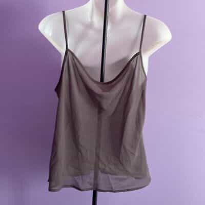 Super sheer tank size 12 no brand name I would call it dark gray it measures approximately 20” from armpit to armpit (3)