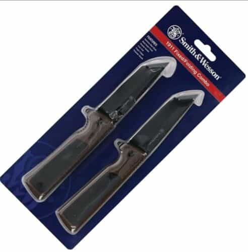 This Smith & Wesson 1911 knife set is a must-have for any collector or enthusiast. With stainless steel black blades and polymer handles, this combo set comes with a liner lock folding knife and sheath included. The blade type is a tanto and the tang is either half or three-quarter, making it ambidextrous for all users.