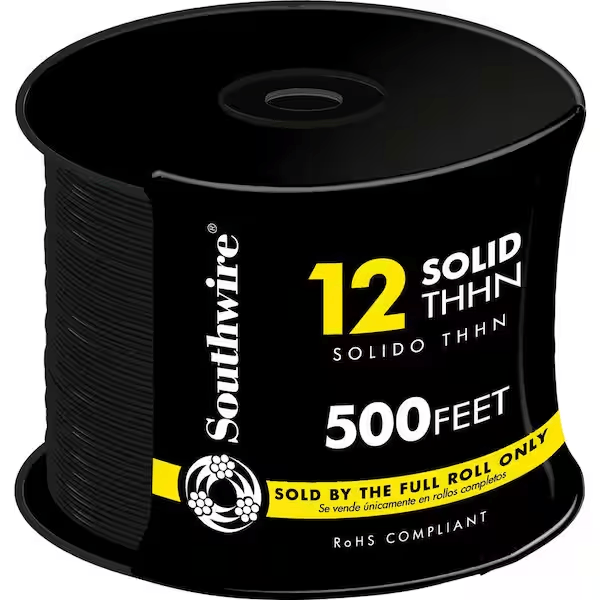 Southwire 11587358 500 ft. 12 Black Solid CU THHN Wire