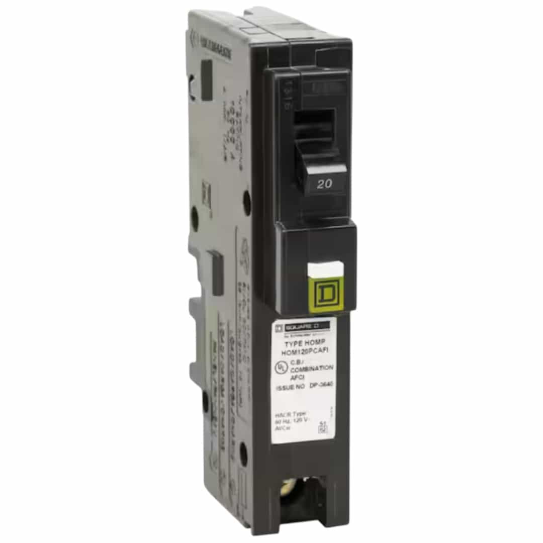 - Square D Homeline 20 Amp single-pole plug-on-neutral combination AFCI circuit breaker