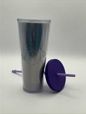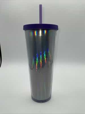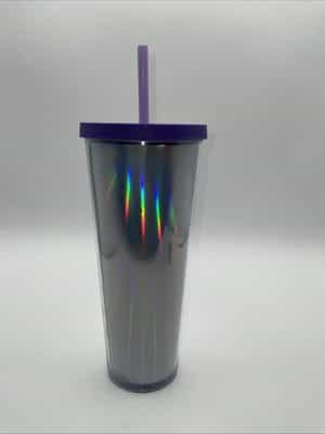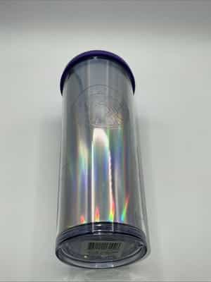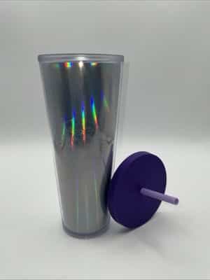 Starbucks Tumbler 2015 Rainbow Iridescent Foil Cold Cup 24 oz Silver Purple Rare