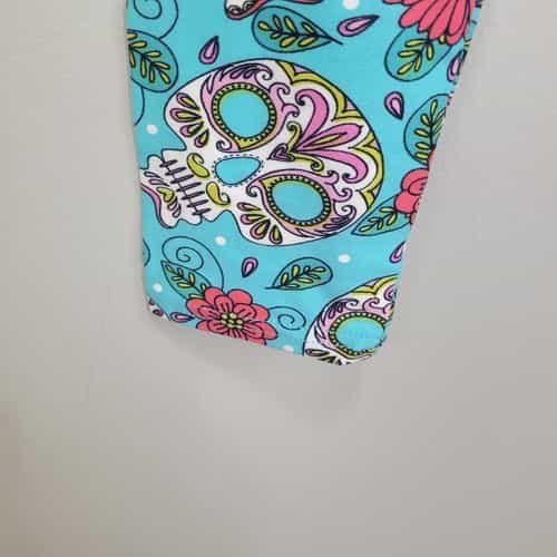 Bright colorful sugar skull print ankle length leggings made of polyester and spandex!