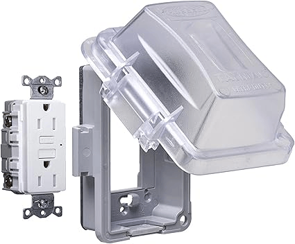TayMac MG420CS Nonmetallic Extra Duty Complete in-Use Cover 15 Amp WRTR Self Test GFCI Kit, 1-Gang, Clear/Gray