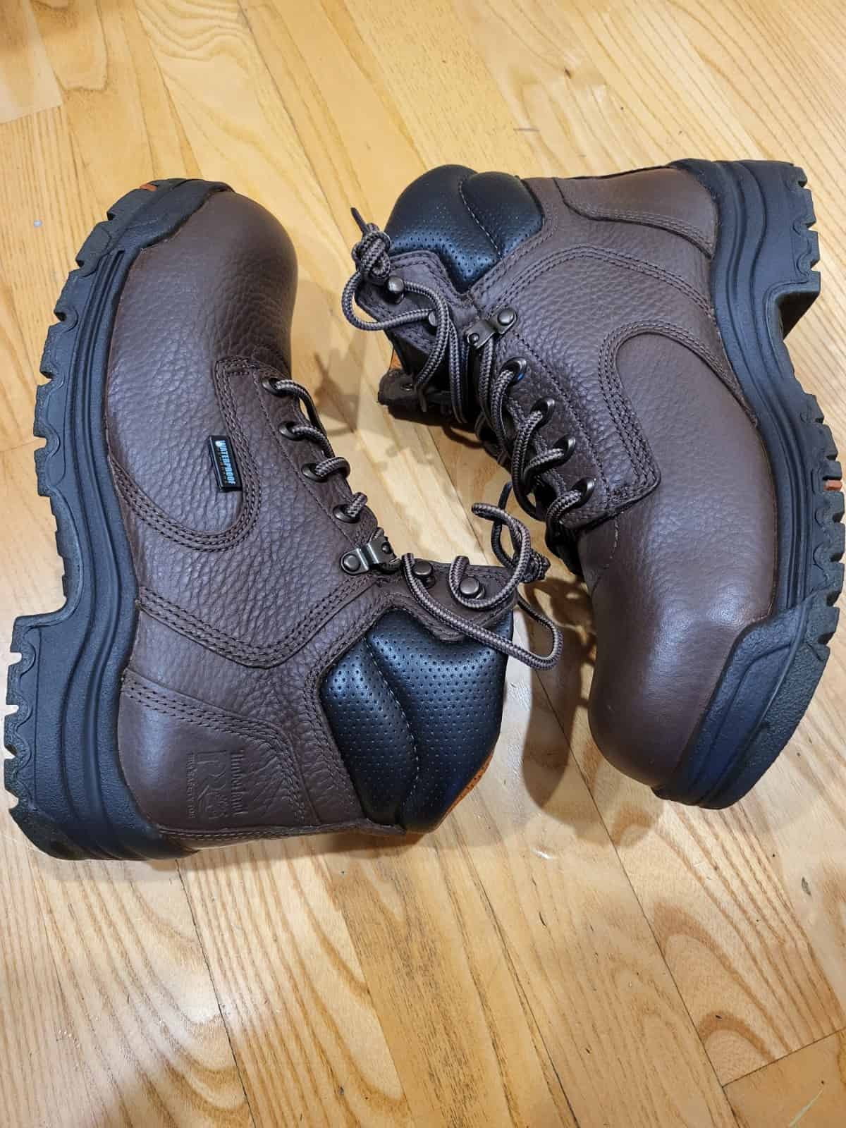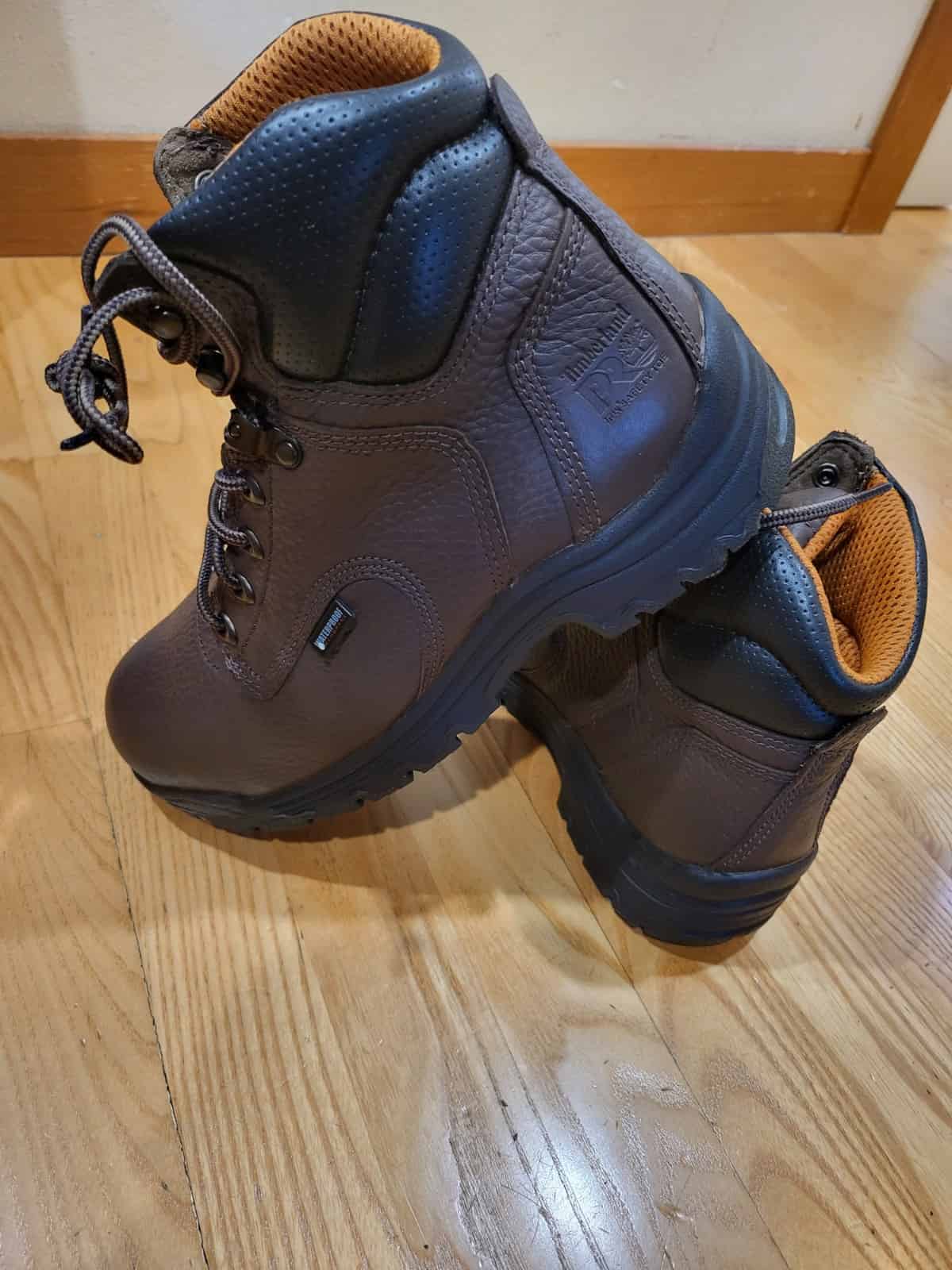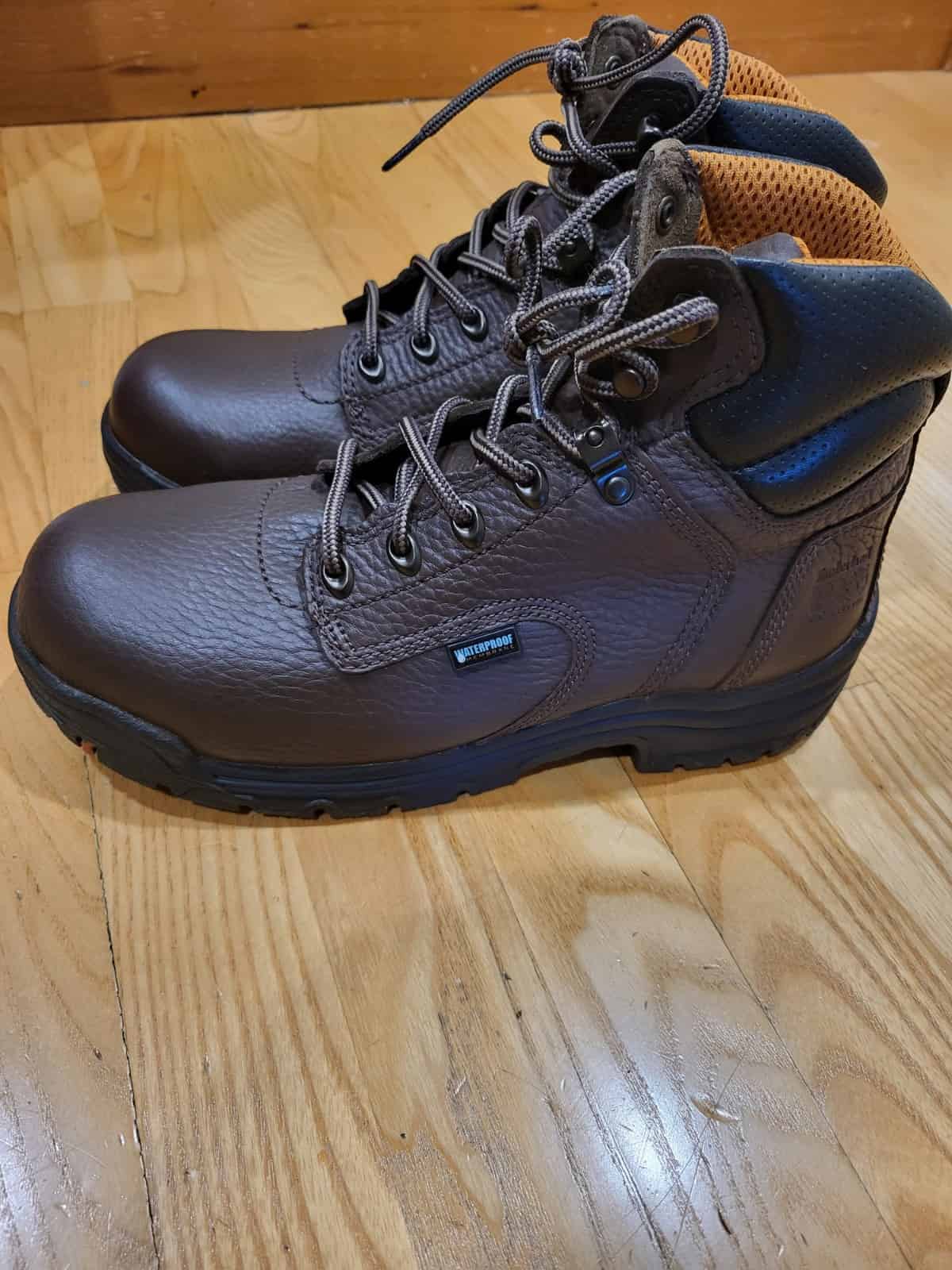 This is a brand new pair of Timberland PRO Titan EV waterproof work boots in women’s wide size 9, with superior comfort, slip‑resistance, and durable construction — perfect for job sites, outdoor work, and all‑day wear at a competitive price