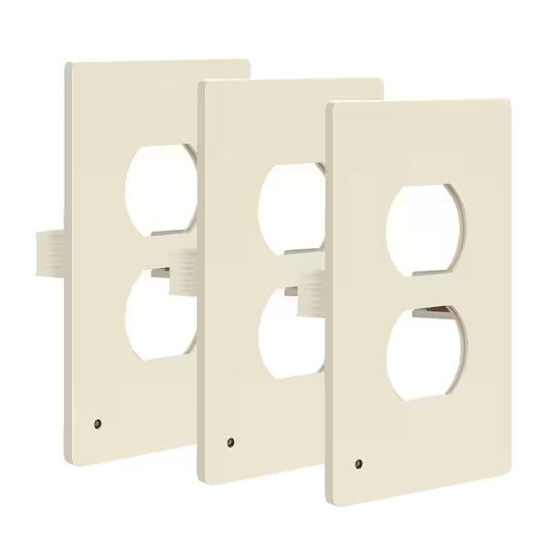 TOPGREENER TGLSI21M-LA-3PC 1-Gang Light Almond Duplex Outlet Plastic Screwless Midsize Wall Plate with Nightlight (3-Pack)