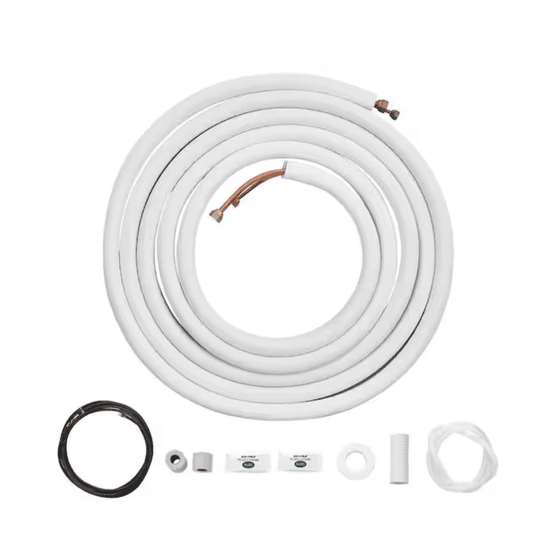 • High and low pressure dual pipes: Includes 1/4 in. high-pressure tube and 3/8 in. low-pressure tube; compatible with 0–12,000 BTU mini-split air conditioners