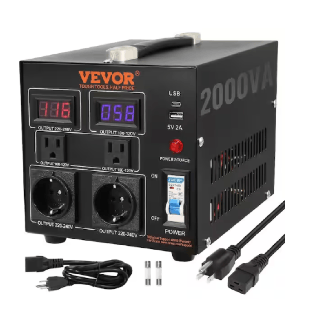 The VEVOR 2000-Watt Step Up Down Converter Transformer offers 110V/220V bi-directional voltage conversion, making it suitable for voltage interchange in most countries. With 6 outlets, it supports up to six devices simultaneously, allowing you to bring domestic appliances and use them abroad with ease.
